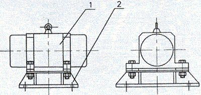 ZFB系列防閉裝置的結構如圖1所示。由振動電機(1),底座(2)兩部分組成。振動電機和底座由螺栓緊密地固定為一體。由于底座緊固地安裝在料倉壁上,這樣就構成了單質點定向強迫振動系統。