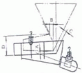 電磁振動給料機設計時未考慮倉壓的影響,為保證給料機正常工作及滿足給料量要求,應盡量減少倉壓對給料機的影響。因此在設計溜咀時,應用溜咀的后側板承擔料柱的垂直壓力,溜咀型式及配置參見下圖。