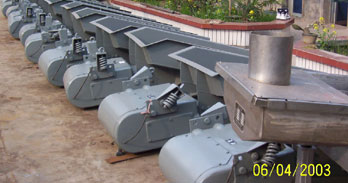 電磁振動給料機(慣性振動給料機)廣泛使用在冶金、煤炭、電子、機械、化工、建材、輕工、糧食等行業中,在生產流程中,用于把塊狀、顆粒狀、粉狀物料從貯料倉或漏斗中定量、均勻、連續地給到受料裝置中去。